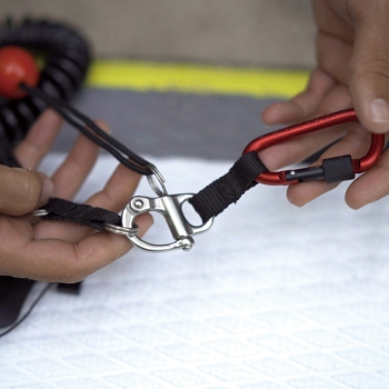 川で危険な時にリーシュコードを即座に外せるようにクイックリリース仕様を採用しています。