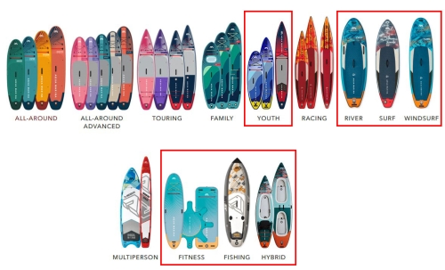 特化型は子供用、リバー、サーフ、フィッシング、フィットネスなど...それぞれの用途に合わせて設計されています。