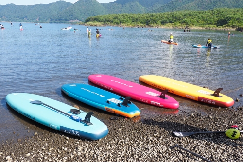 夏になると子供一緒に穏やかな湖でSUPクルージングを楽しみます。」
