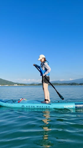 「春夏などの暖かい季節は、海の上をクルージングしたり、サップヨガ したり、サップの上から海に落ちて遊んでいます!