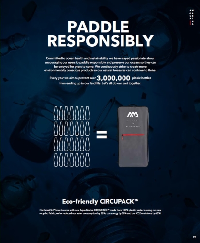 AQUA MARINAの最新インフレータブルSUPやカヤックには、100%リサイクルプラスチック廃棄物から作られたCIRCUPACK™ を採用しています。