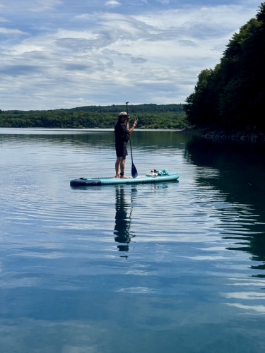アクアマリーナSUPを選んだ理由は、アウトドアショップSWENのスタッフからおすすめされたことと、2年保証と品質の良さが決めてです。