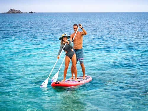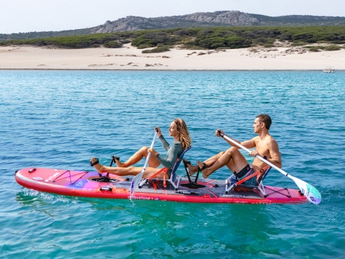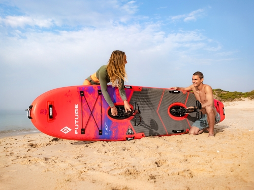 ペダルで進む革新的なSUP「FUTURE」と、背負って運べる超軽量パックラフト「BEE」。