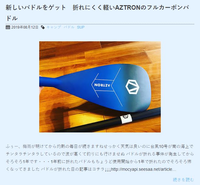 折れにくく軽いAZTRONのフルカーボンパドルを、SUPフィッシング界で有名な【モチャピさん】のブログで紹介していただきました!