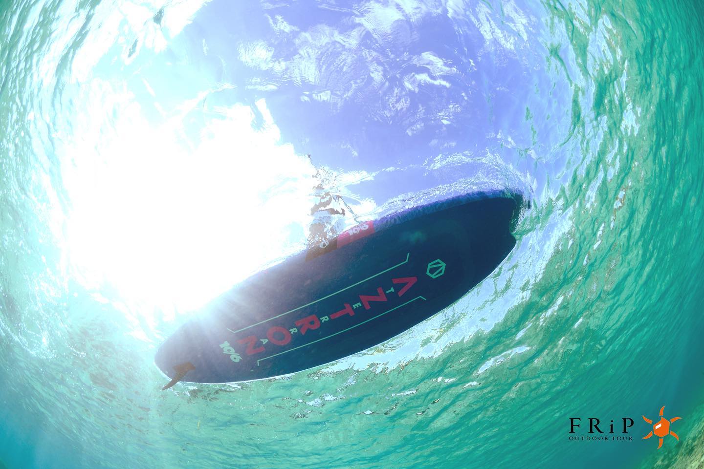 沖縄の透き通った海とAZTRONのボードデザインは相性が抜群。