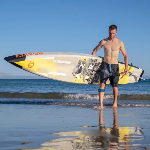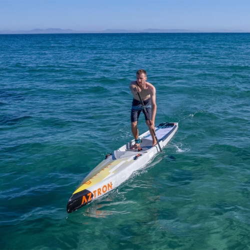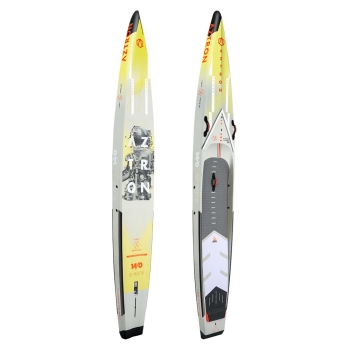 水をはじくフロントデッキを備えた細長いアウトラインを特徴としたレースSUP(ハードボード)です。
