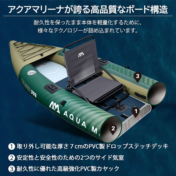 昨年に新商品として販売後、すぐに完売となったCALIBER(カリバー)。 ロッドホルダーなどのパーツを取り付けるマウントが4箇所に装備され、フィッシングを本格的に楽しみつつ、友人とレジャー用にも使えるハイブリットです。
