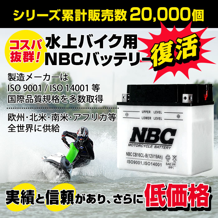 PWC専用のバッテリーとしてこれまでも弊社で長らく取り扱いをしてきました【NBC液別バッテリー】が、約2年ぶりに販売再開となり、本日商品が入荷しました。