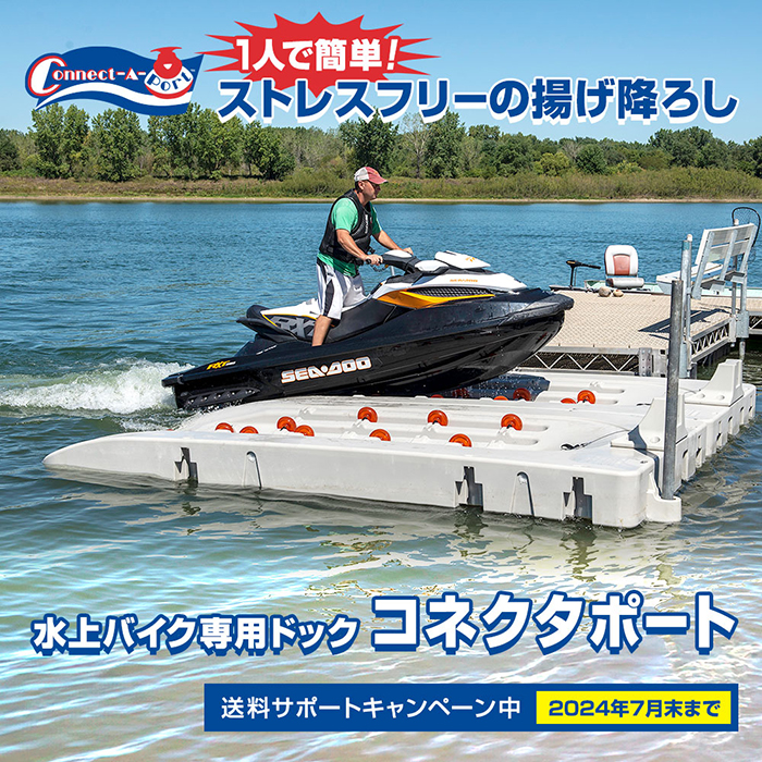 マリーナ、プライベートビーチ、別荘地といった少々特殊な環境でなければ設置は難しい商品ですが、1度使ったらクセになる水上バイク専用浮船台コネクタポートを導入してみませんか?