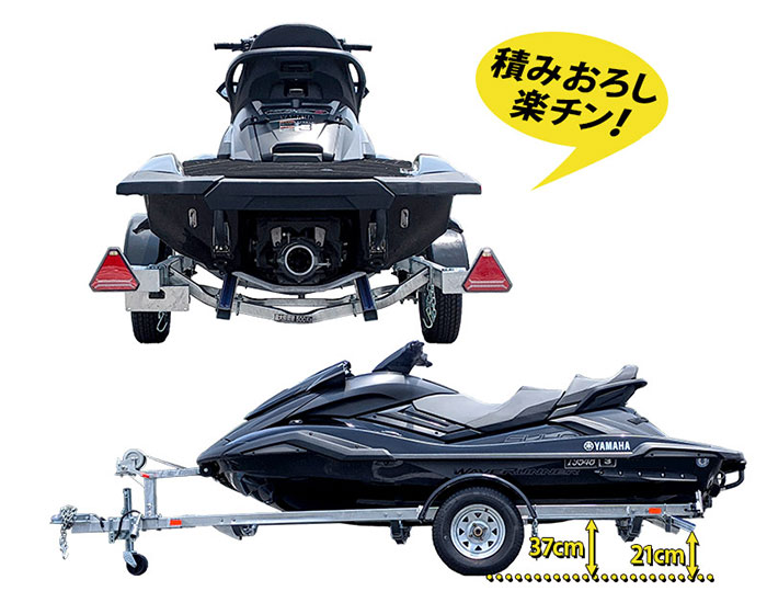 水上バイク用トレーラーとして耐久性を最重視したドブ浸け仕様となっています。