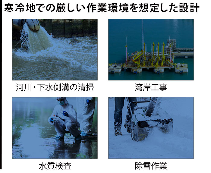 最強の防水性能と保温性 寒冷地専用ドライスーツ