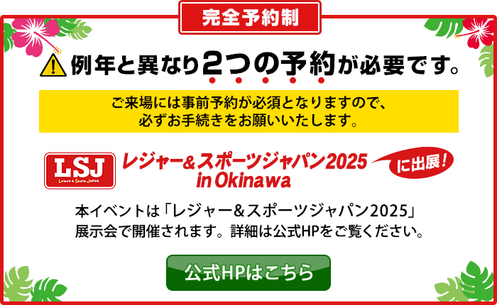 例年1月に弊社開催のマリンアクティビティグッズ展示会を開催しておりましたが今回の展示会は、弊社主催ではなく、【レジャー&スポーツジャパン2025 In Okinawa】の展示会へ参加する形での開催となります。
