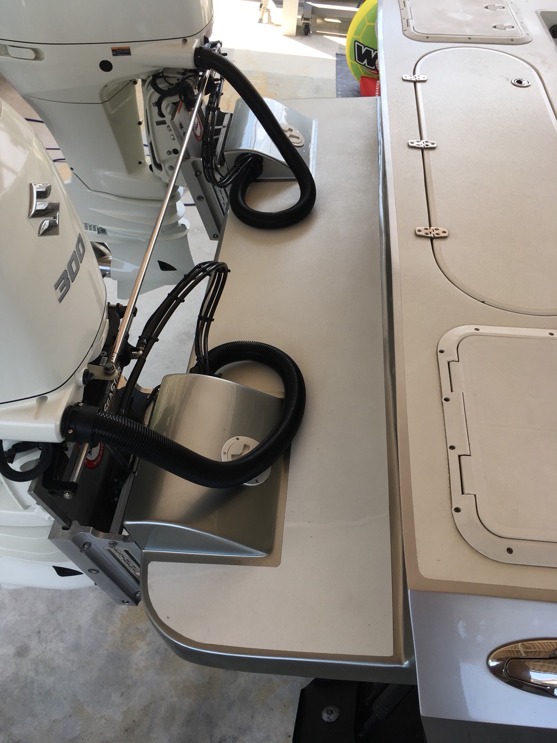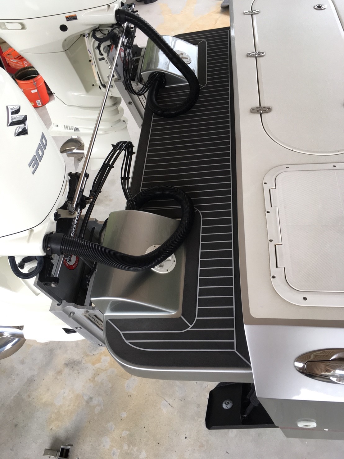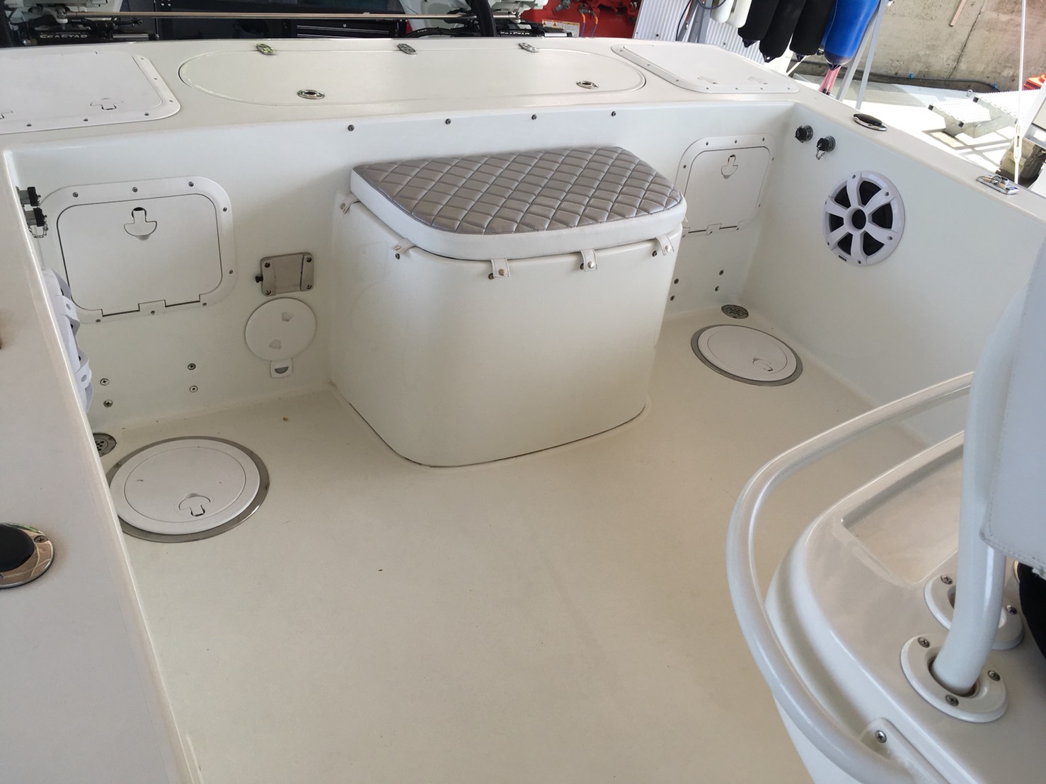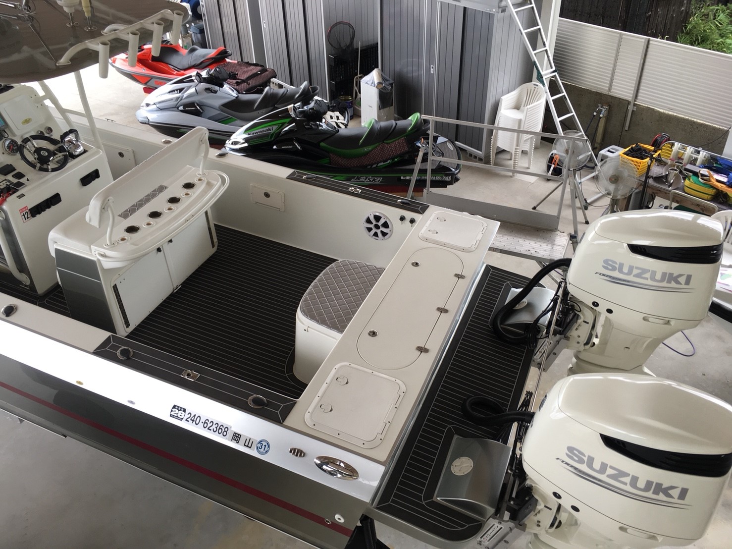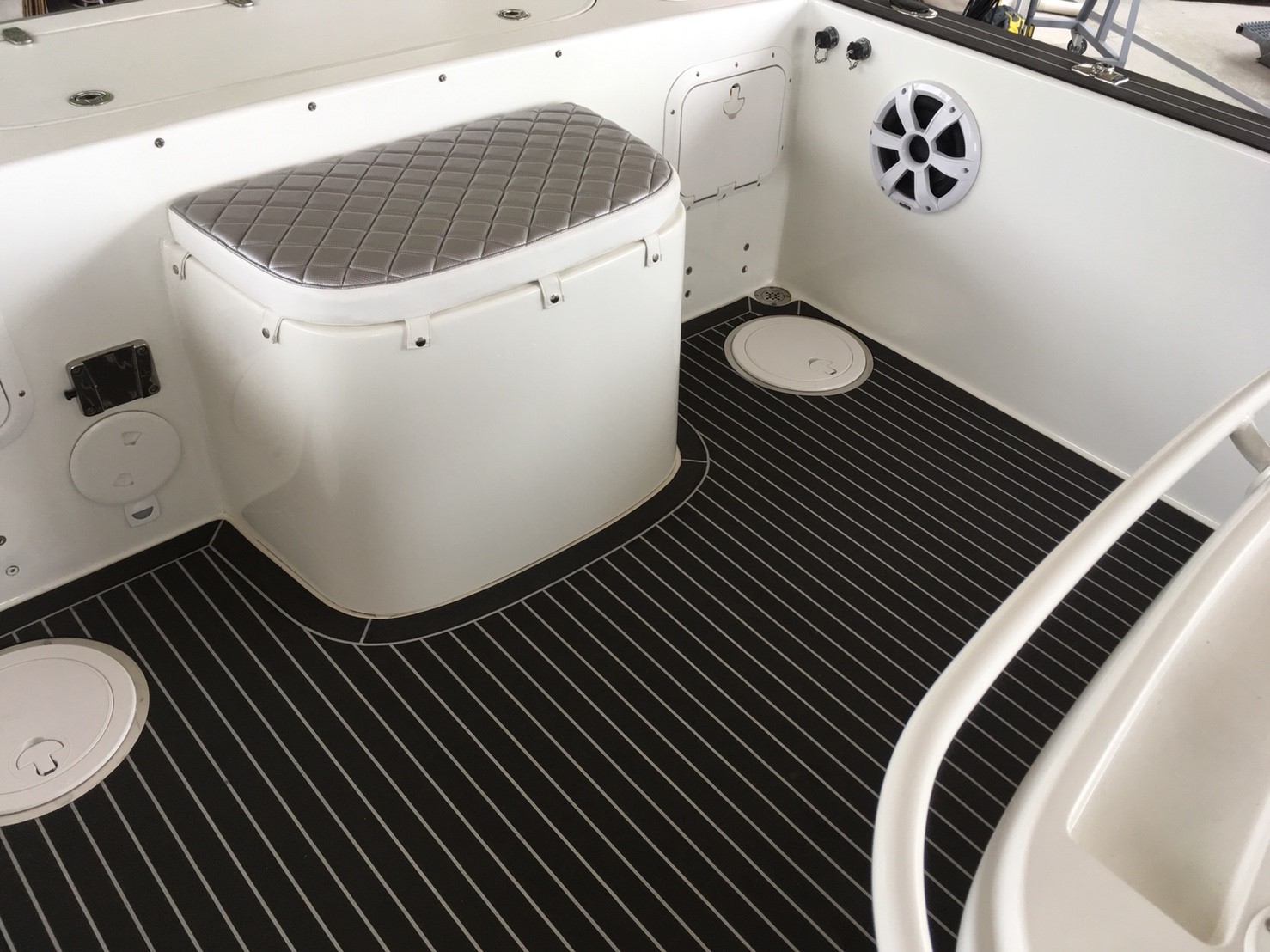 なりました。施工後の画像右上部分、スピーカーの上の部分も乗船する際に足をかける場所として