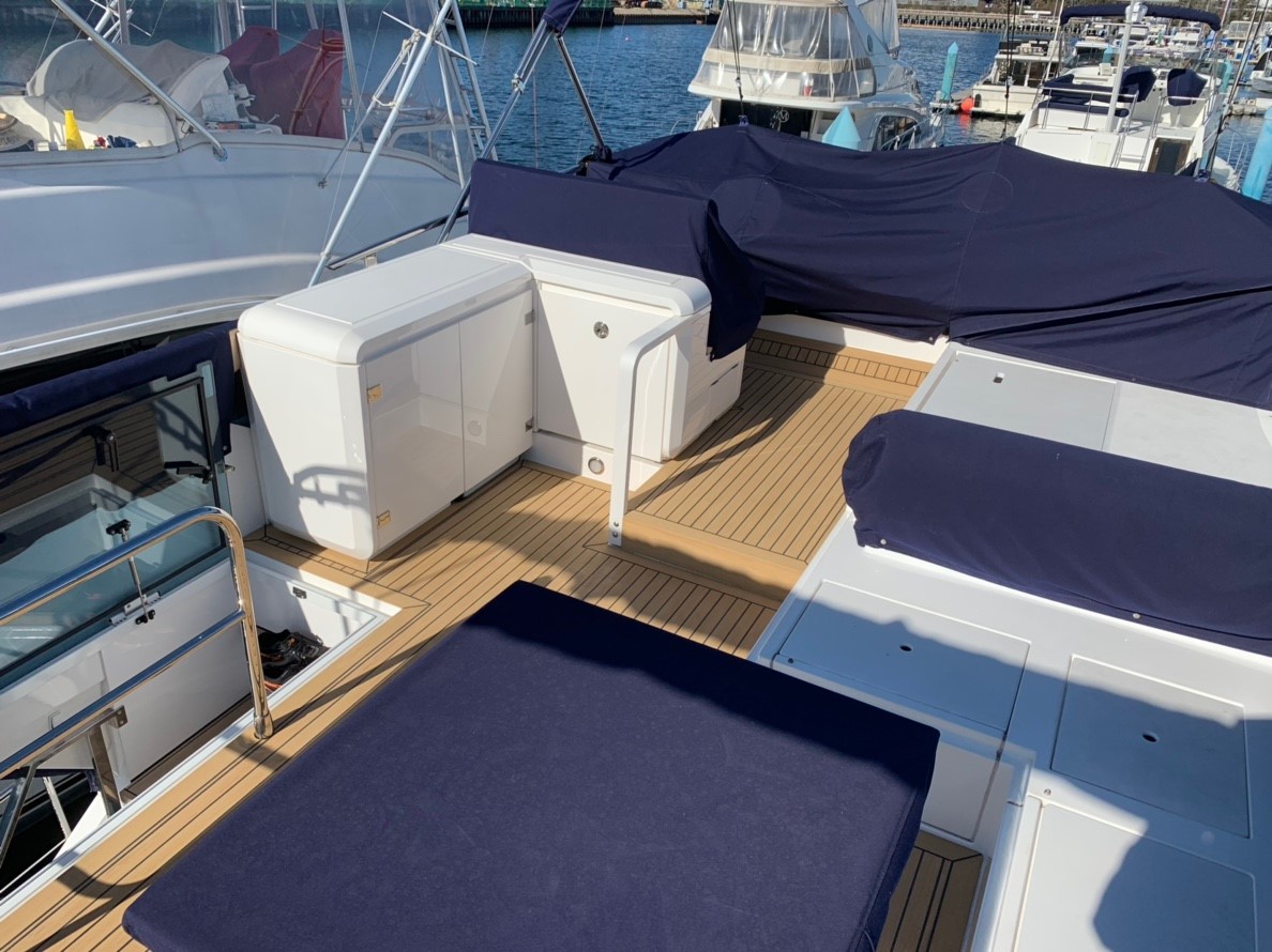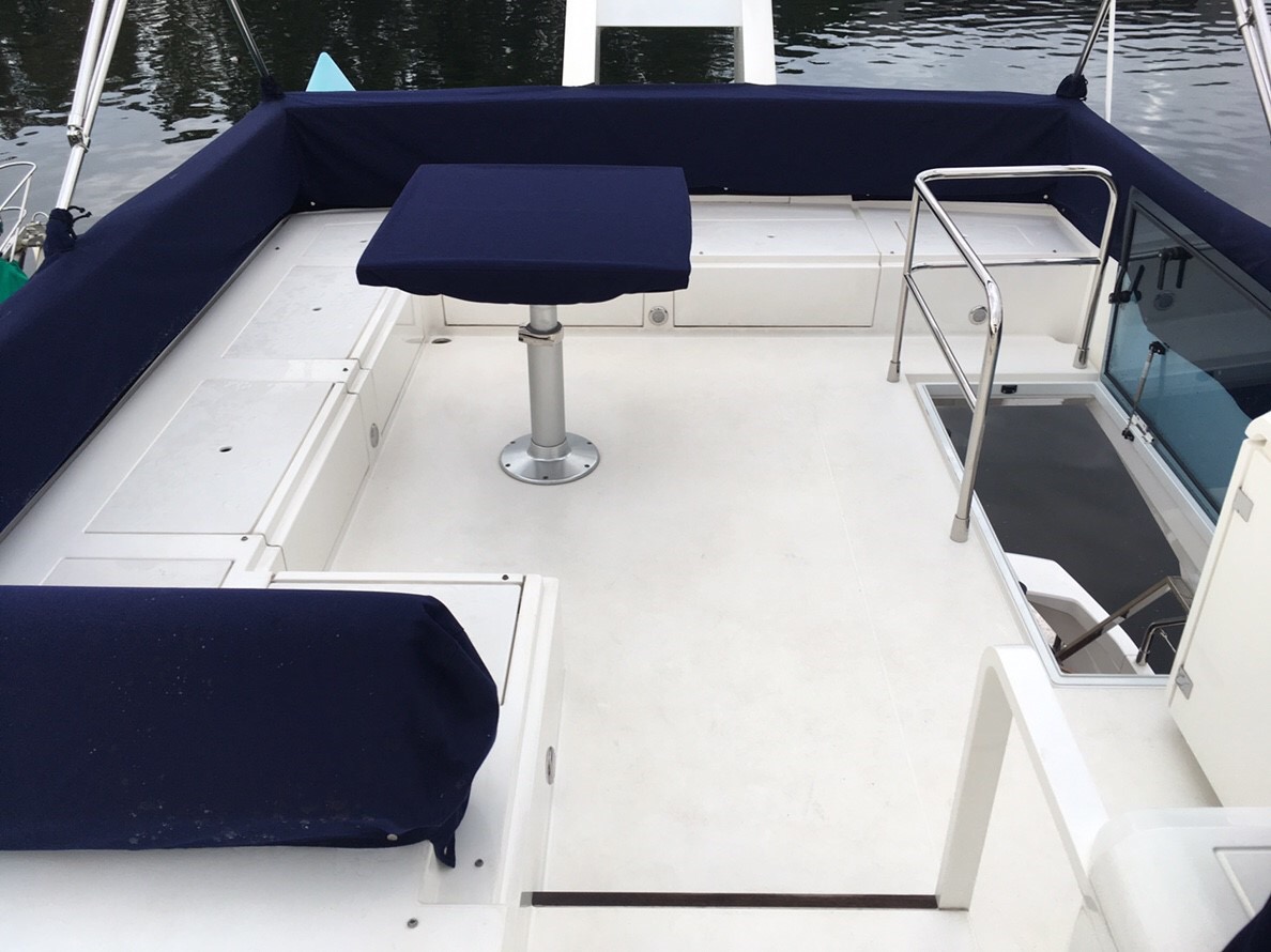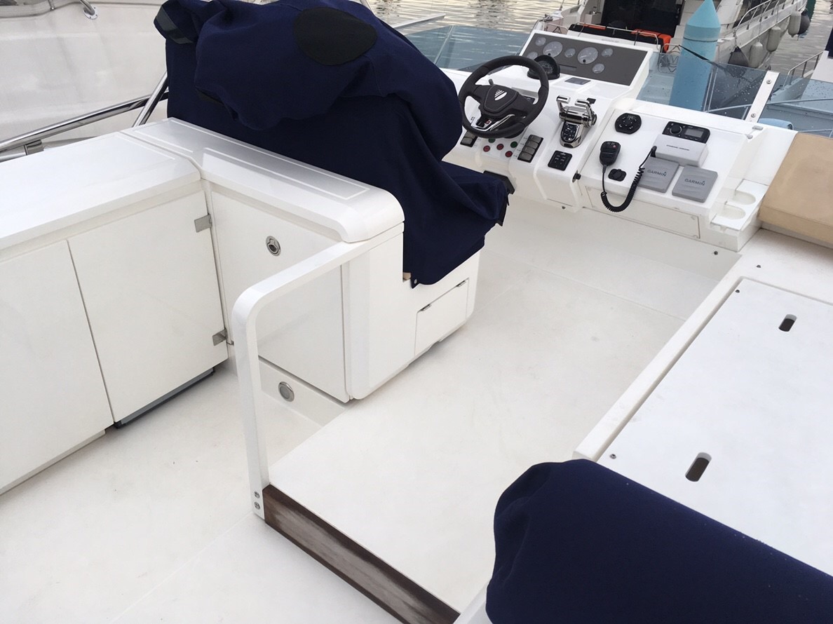 非常に広いフライングブリッジですがスッキリしたデザインです。