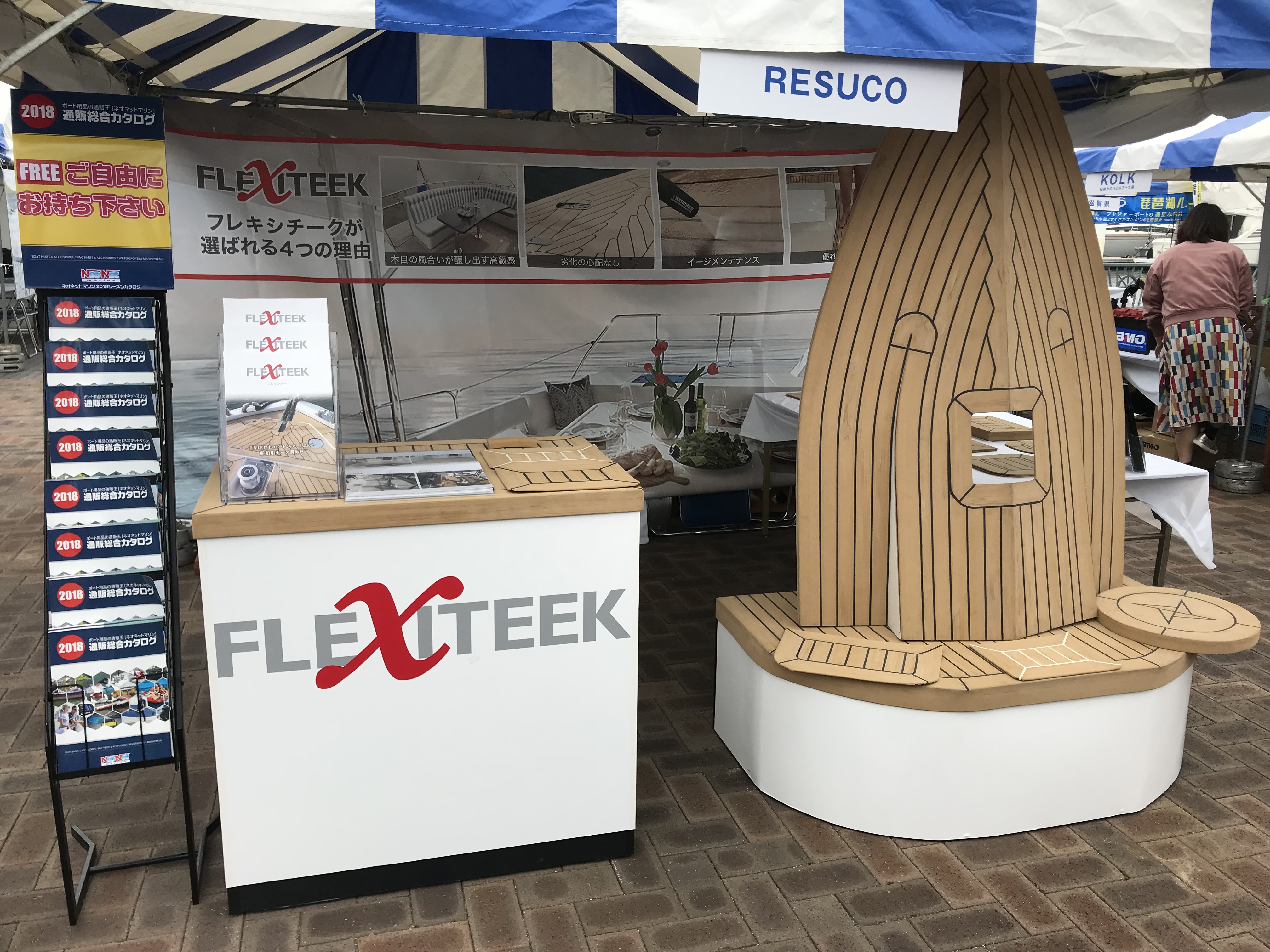 実際にフレキシチーク施工されている艇も出展されており貴重な機会となっております。