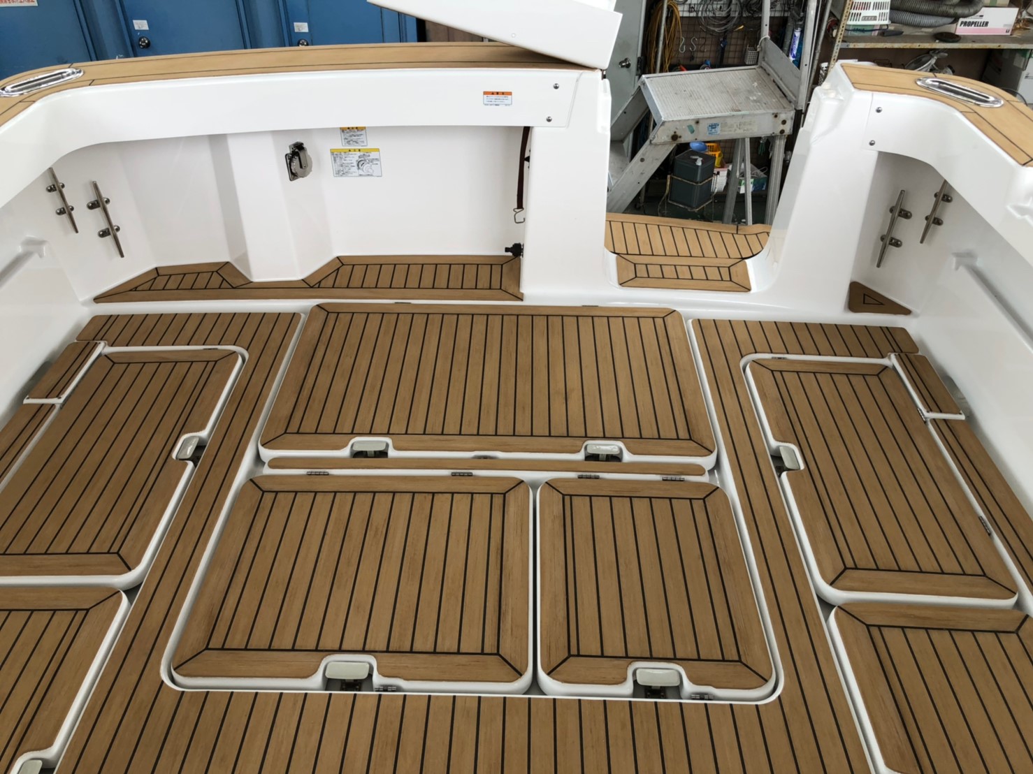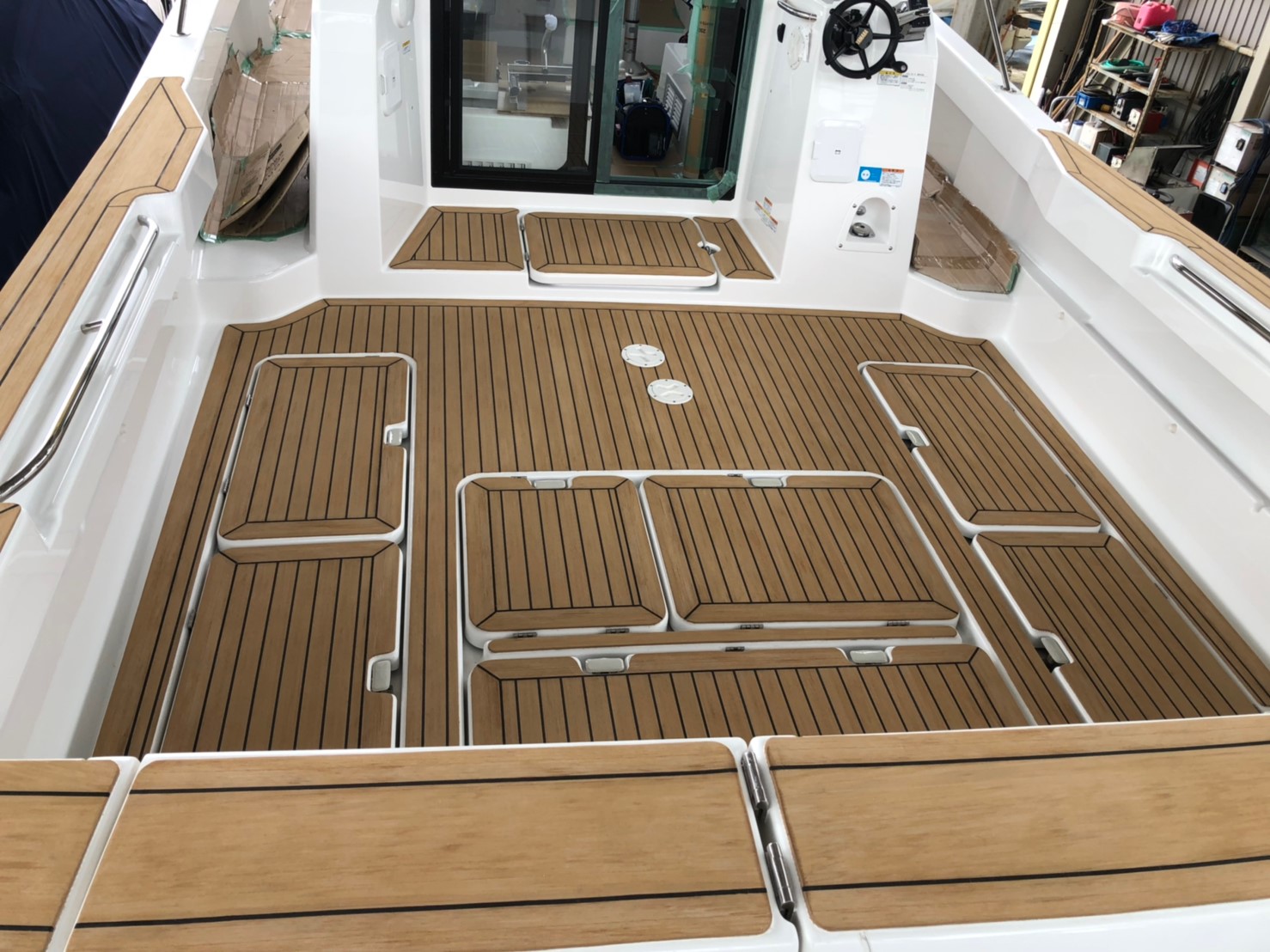 DFR-33の新艇に貼り付けを致しました。やはり様々なマットや合成チーク調床材、