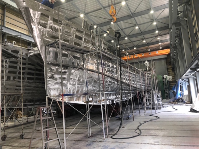 型紙作成のため4月7日に訪れたのはシー・スピカを建造中の瀬戸内クラフト様。