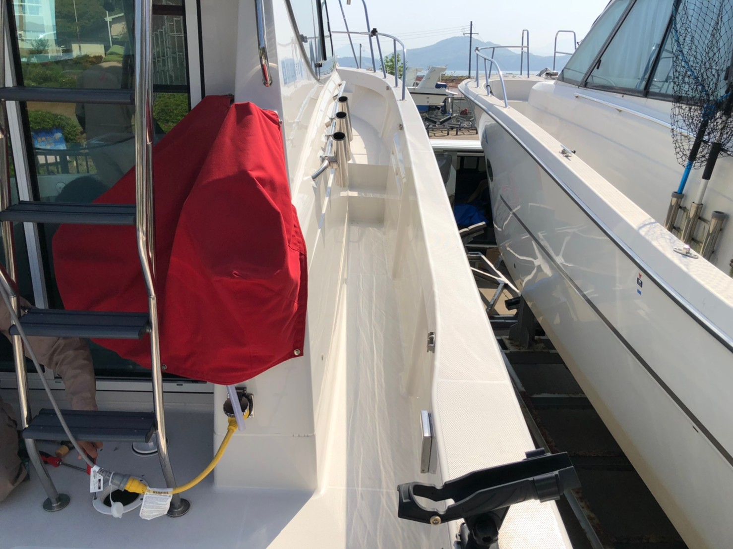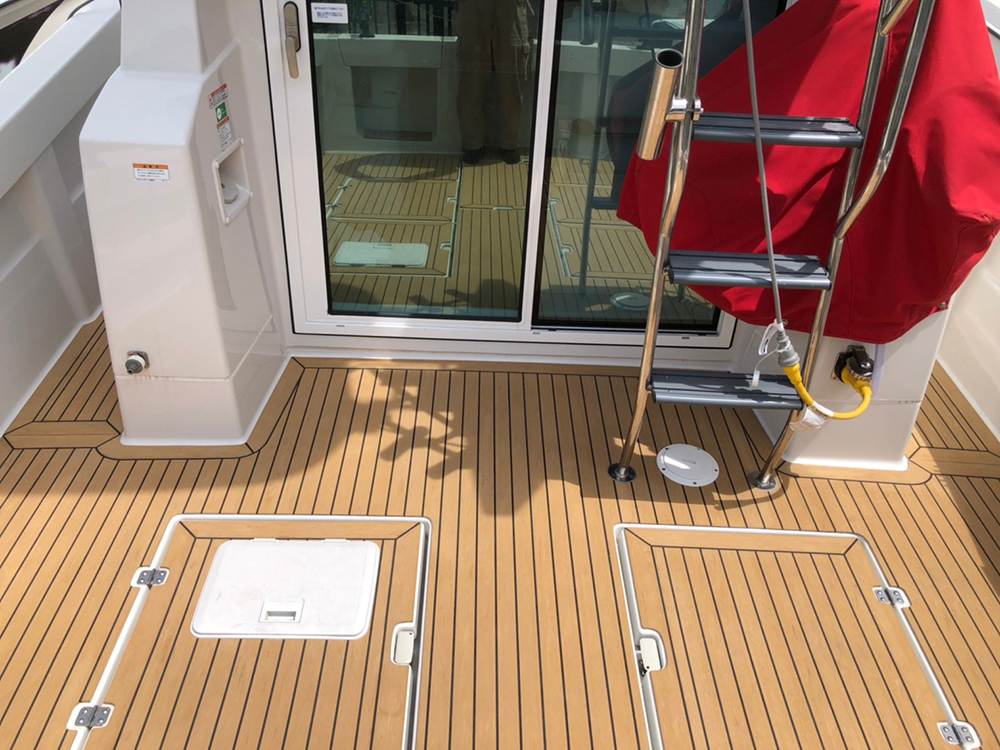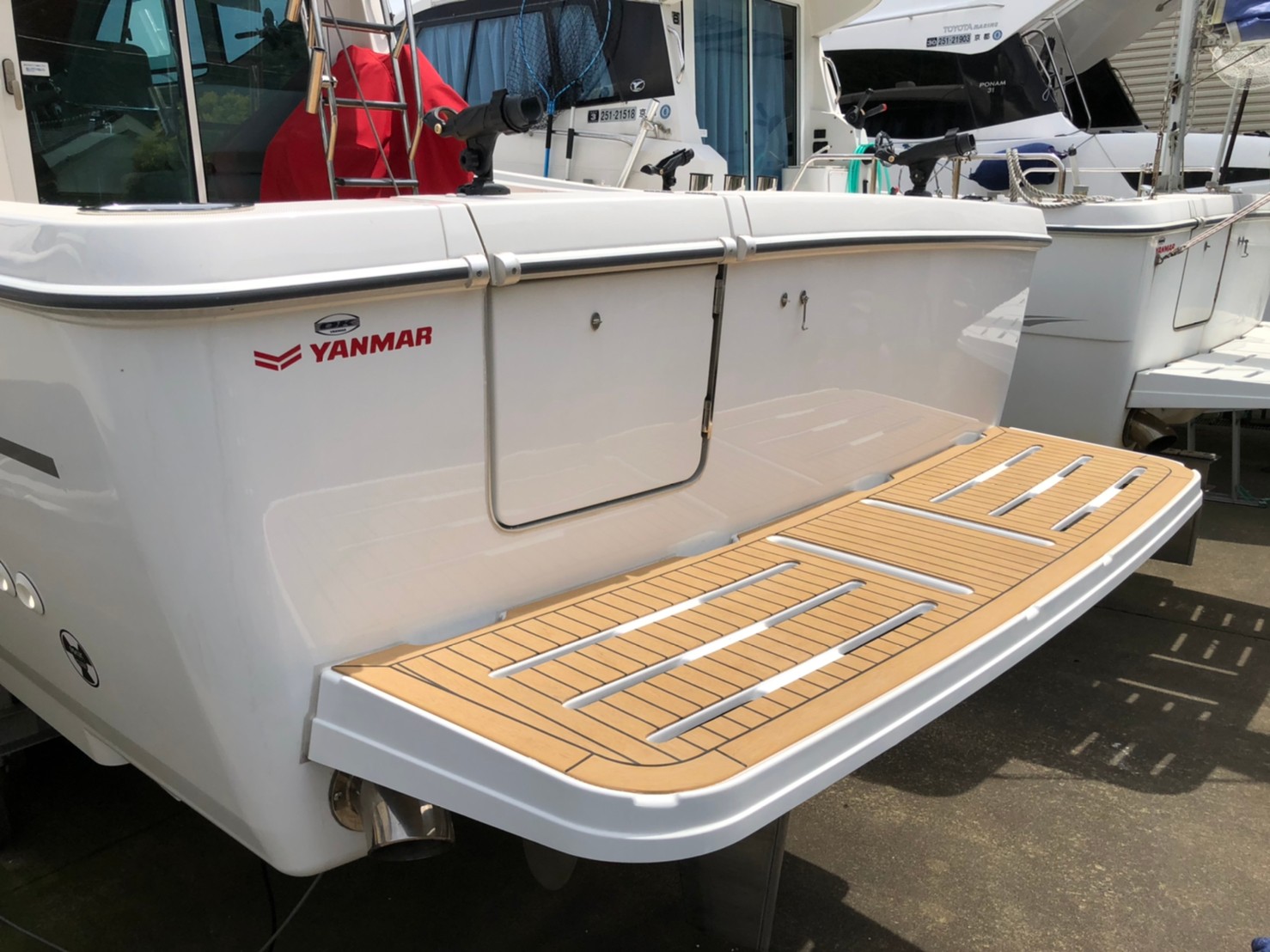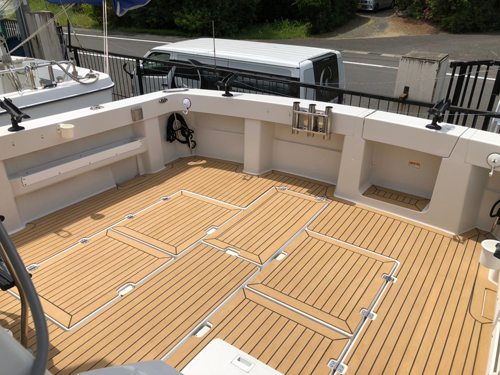 今回は株式会社 大阪マリン様のご依頼でアオイマリーナにて、ヤンマー EX-34FBにフレキシチークを施工してきました。
