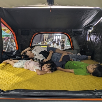 ルーフテントは定員に問題なかったとしても、テントに人が入ると総重量が増えて、車両やキャリアの耐荷重をオーバーしてしまう可能性があります。