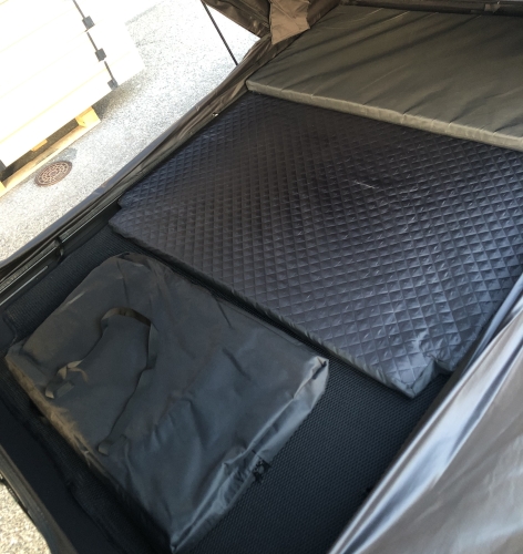 テント内にラダーを収納できるように、マットレスが折り畳めるようになりました。
