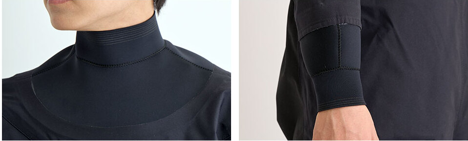 ネック部・リスト部は、肌に隙間なく密着することで防水性を保つ構造となっています。