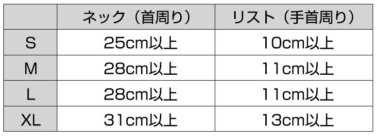 [ネック・リストのサイズ表]