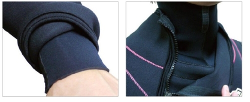 首元・足首・手首のシール部分や、2ピース風デザインのドライスーツに見られる、上から被せるように取り付けられた生地のことを指しています。
