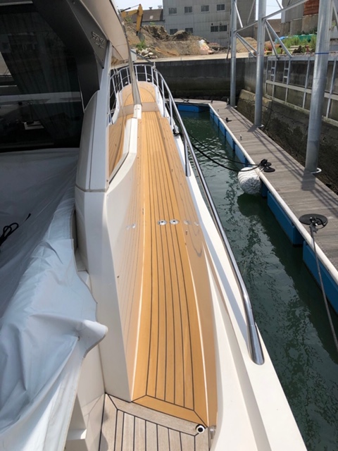 サンシーカー74 Sport Yachtにフレキシチーク施工のご紹介(施工編)