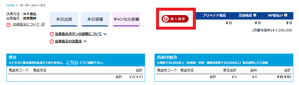 オーダーステータス内の購入履歴> NP掛け払い明細の確認よりご確認いただけます。(画像参照)