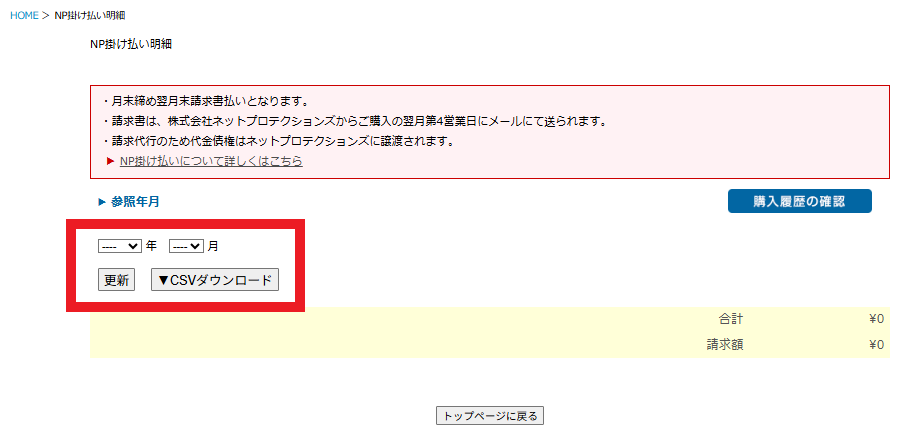Q&A トップ > NP掛け払いの明細を確認したい