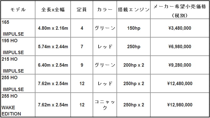 タッチスクリーンコマンドセンターが255 HO インパルスシリーズに2018年モデルから標準装備、195、215シリーズには