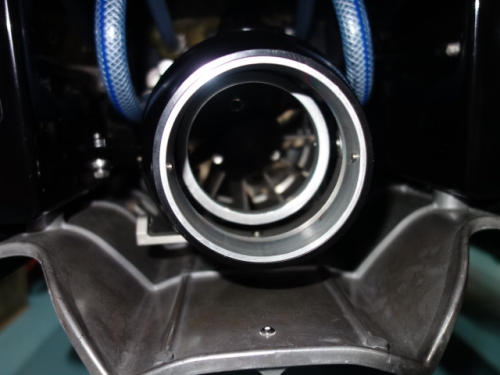 純正ノズルはポンプセンターから上方にオフセットされており、この方式は水流が上方に排出され、艇フロントが上方に向きます。